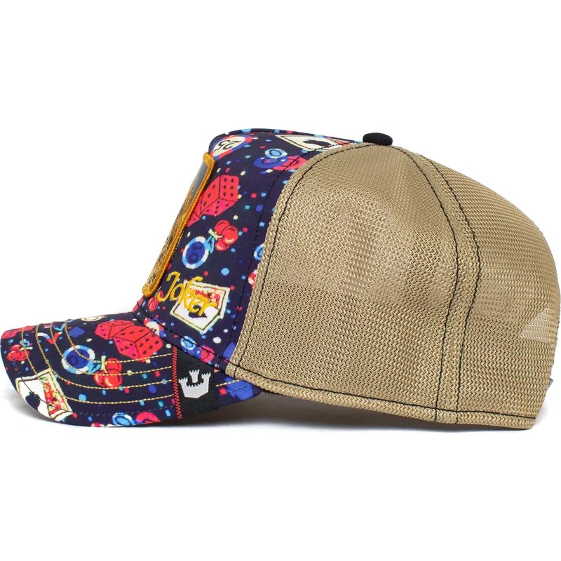 Den mångfärgade Hyena Joker Poker Face Casino The Farm trucker-keps från Goorin Bros. är perfekt för dem som vill sticka ut med en touch av stil och personlighet. Den här kepsen är gjord av högkvalitativa material och garanterar hållbarhet och motstånd, vilket gör den till ett viktigt tillbehör för alla kläder. Kombinationen av färger och utskrifter av denna keps gör den unik och perfekt för att lägga till en touch av originalitet till varje look.