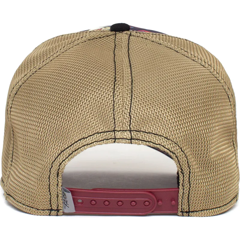 Den mångfärgade hyenan Joker Poker Face Casino Farm trucker-kepsen från Goorin Bros. är utan tvekan ett tillbehör som inte kan saknas i din samling. Med sitt unika tryck och livfulla färger kommer denna keps att bli centrum för uppmärksamheten vart du än går. Den här kepsens snapback-stängning garanterar en perfekt och bekväm passform, anpassad till storleken på ditt huvud så att du kan bära den med total komfort.