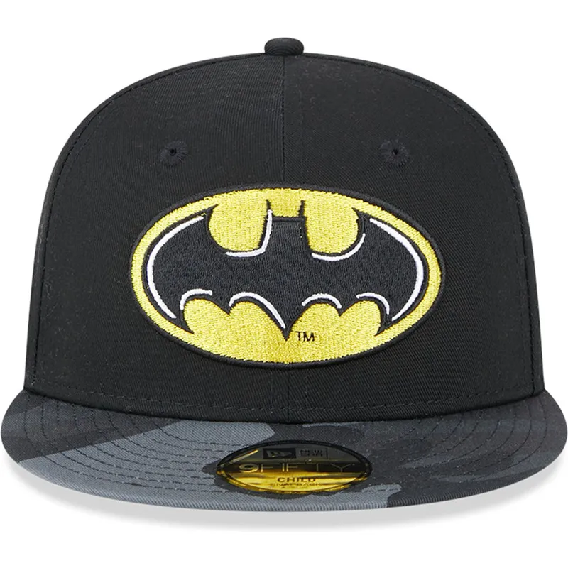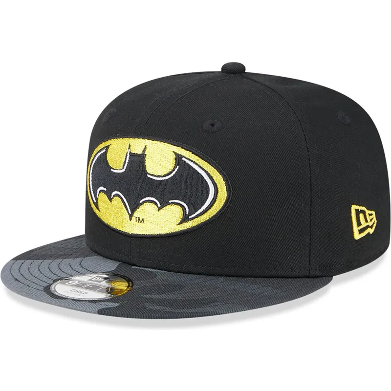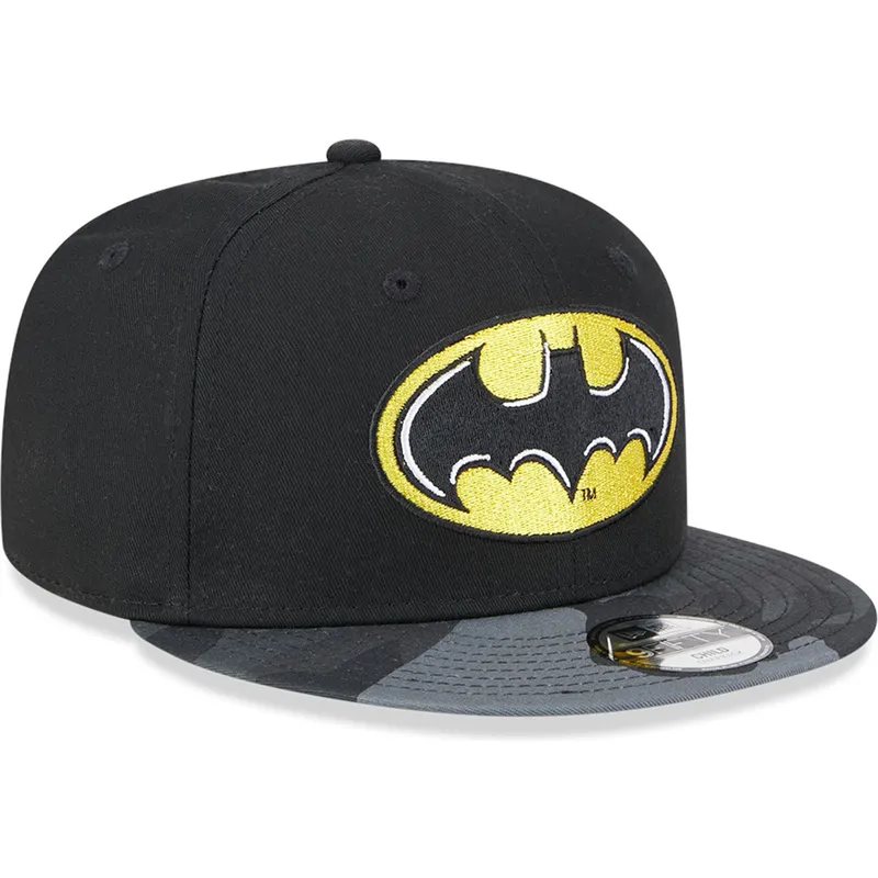 New Era Batman DC Comics pojkarnas 9FIFTY svart och kamouflage snapback platt keps är det perfekta komplementet för små superhjältefans. Denna unisex-designkeps utmärker sig för sin moderna och ungdomliga stil, perfekt för alla tillfälliga tillfällen. Med snapback-stängningen kan du enkelt justera den för en bekväm och säker passform, vilket säkerställer att den sitter på plats hela dagen.