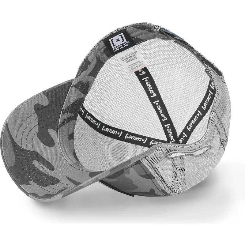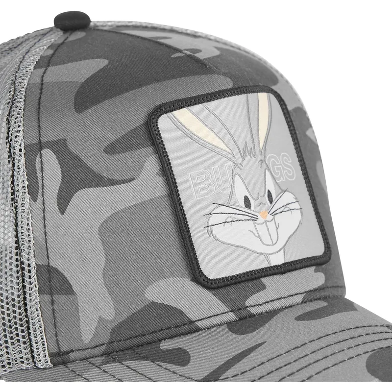 Bugs Bunny LOO8 PEO1 kamouflage grå truckerkeps från Capslab är perfekt för dig som letar efter en mångsidig accessoar med personlighet. Dess unisexdesign gör den idealisk för alla som vill lägga till en touch av stil till sin outfit. Snäppförslutningen säkerställer en perfekt passform, anpassad till storleken på varje huvud för att garantera komfort hela tiden.