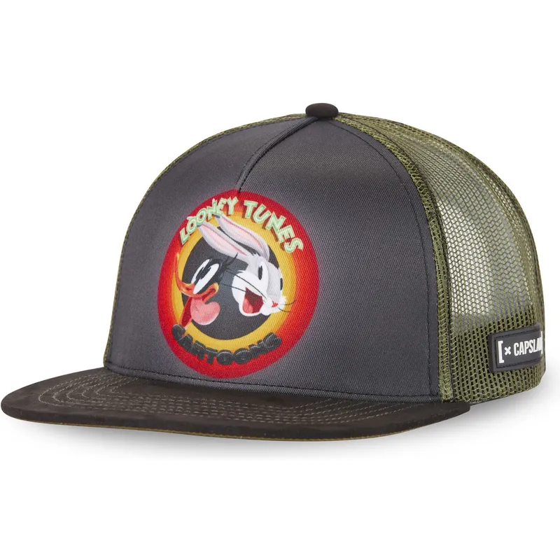 Den grå och gröna Bugs Bunny and Daffy Duck LOO8 RIN platta truckerkeps från Capslab är ett mångsidigt tillbehör som anpassar sig till alla tillfällen. Oavsett om du tar en promenad på stan, shoppar eller njuter av en dag utomhus är den här kepsen den perfekta accessoaren för att lägga till en touch av kul till din stil. Dess unisexdesign gör den lämplig för män och kvinnor som vill sticka ut med en originell och slående accessoar.