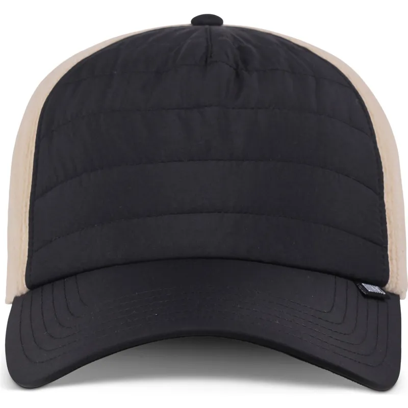 Med den svängda svarta och beige HFT Puffy Nylon snapback-kepsen från Djinns kommer du att sätta trenden vid alla tillfällen. Dess unisexdesign gör den lämplig för alla kön, medan dess böjda form gör den smickrande för alla typer av ansikten. Snäppförslutningen möjliggör en anpassad passform, medan nylonmaterialet säkerställer en lång livslängd för denna premiumkeps.