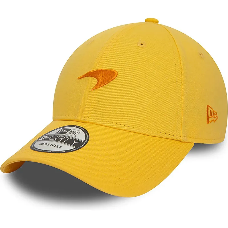 McLaren Racing Formula 1 9FORTY Seasonal Justerbar Yellow Curved Cap från New Era är definitivt ett måste för alla Formel 1-fans favoritlag. Unisexdesignen gör den idealisk för både män och kvinnor, och dess justerbara remstängning säkerställer en bekväm, personlig passform för alla vuxna som bär den.