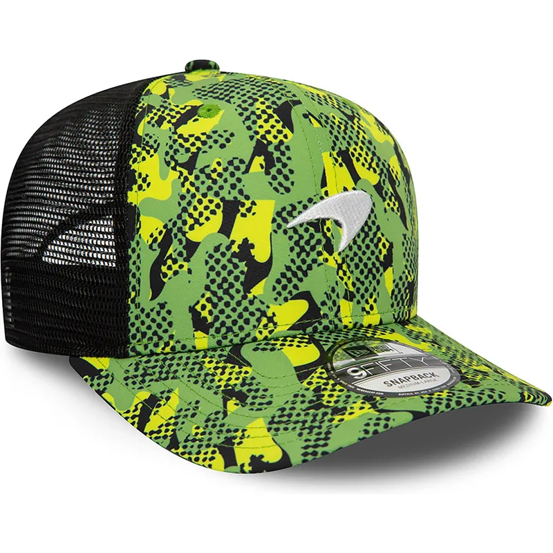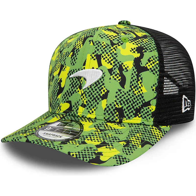 McLaren Racing Formula 1 9FIFTY camouflage trucker-keps från New Era är perfekt att bära vid alla tillfällen, vare sig det är dagligen eller för att stötta ditt favoritlag i Formel 1-lopp Dess mångsidiga och aktuella design gör den till ett idealiskt alternativ att kombinera med jeans , t-shirts och sneakers, vilket skapar en avslappnad och stilren look.