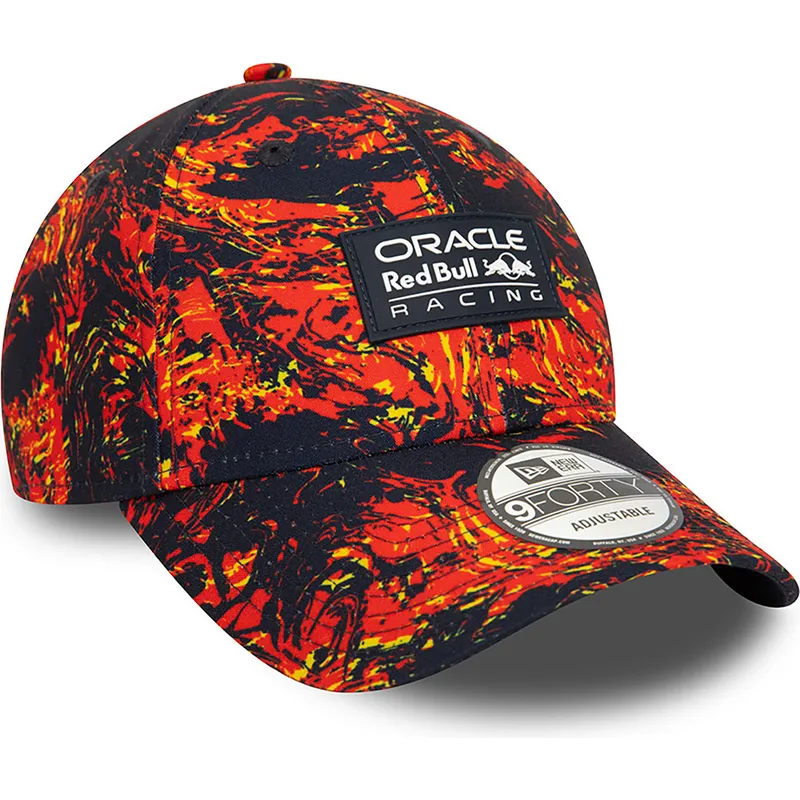Red Bull Racing Formula 1 9FORTY All Over Print Justerbar Röd och Navy Curved Cap från New Era är det perfekta tillbehöret för älskare av snabbheten och spänningen i Formel 1. Med den distinkta Red Bull Racing-logotypen på framsidan, är denna keps ett måste för alla fan av laget. Unisexdesignen gör den idealisk för vuxna i alla åldrar, och den justerbara remmen säkerställer en bekväm, personlig passform för varje person.