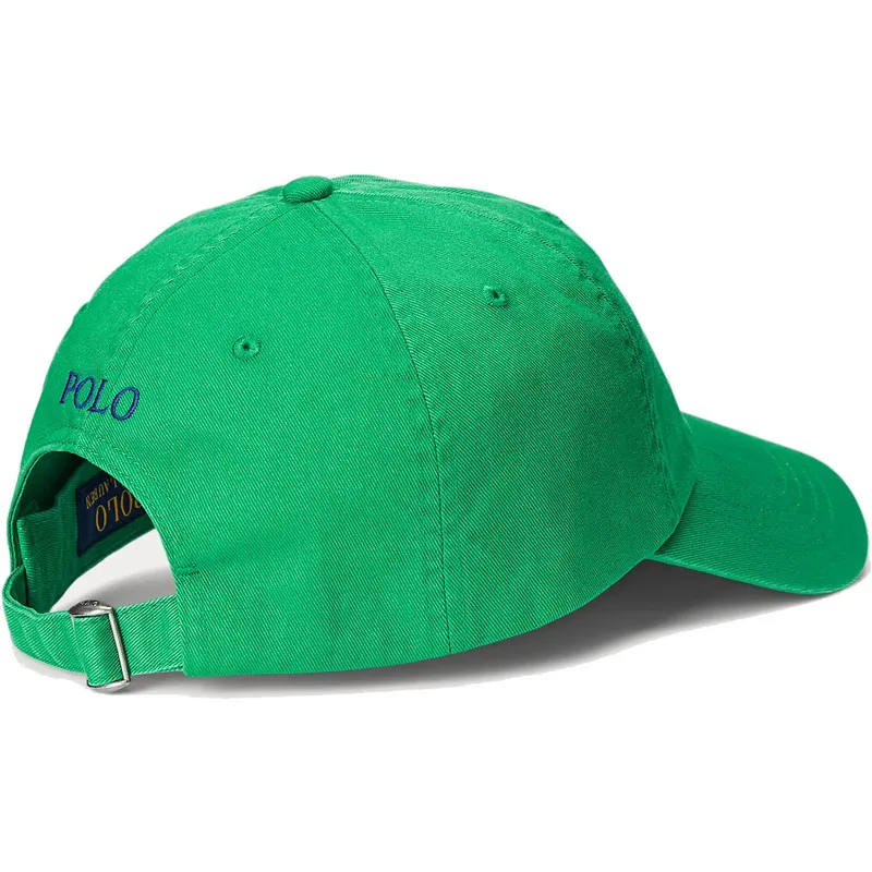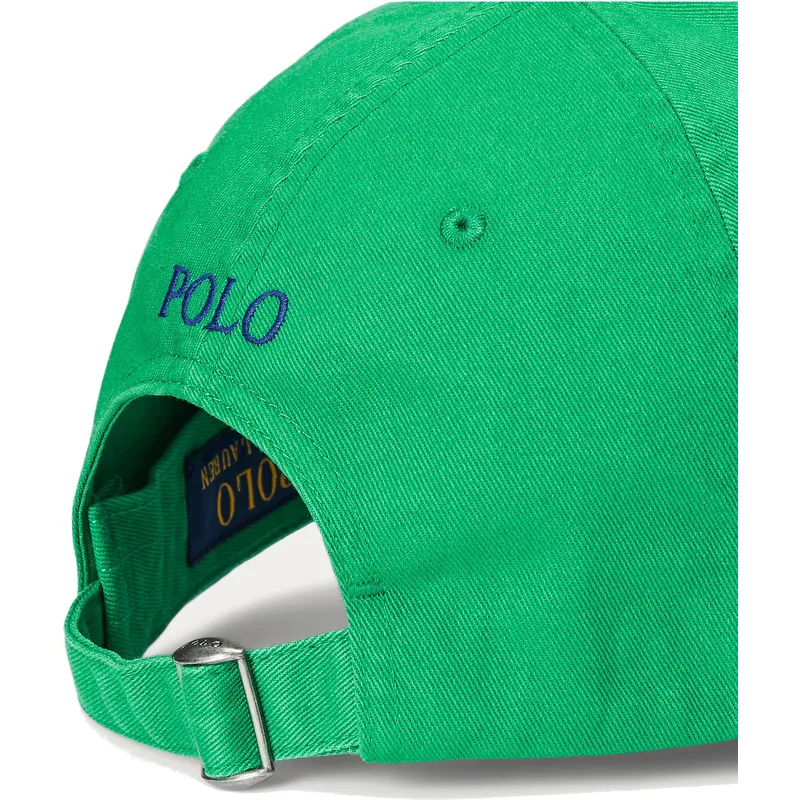 Polo Ralph Lauren Cotton Chino Classic Sport justerbar grön böjd keps med blå logotyp är utan tvekan ett måste i alla kepskollektioner. Dess mångsidighet gör den till det perfekta komplementet till vilken outfit som helst, vare sig den är avslappnad eller mer elegant. Tack vare sin unisexdesign kan både män och kvinnor bära den med stil, vilket ger en touch av klass till deras utseende.