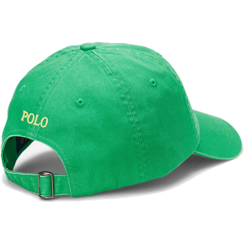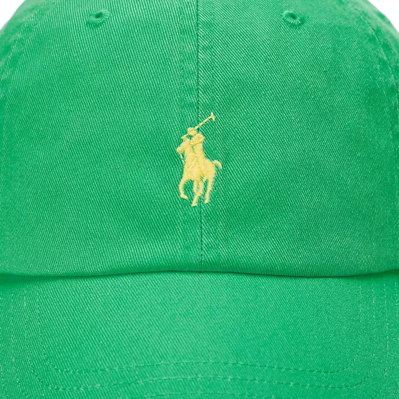 Polo Ralph Lauren Cotton Chino Classic Sport justerbar grön böjd keps med gul logotyp är ett viktigt tillbehör för varje garderob. Dess unisexdesign gör den perfekt för män och kvinnor som letar efter ett mångsidigt och kvalitetstillbehör. Den här kepsen är gjord av material av hög kvalitet och garanterar hållbarhet och stil för alla tillfällen. Den justerbara remstängningen ger en perfekt passform till alla huvudstorlekar, vilket säkerställer komfort och stil i lika mått.