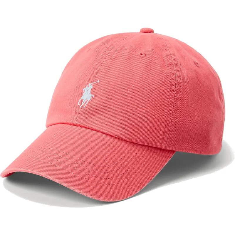 Den ljusröda justerbara böjda kepsen med vit logga Cotton Chino Classic Sport från Polo Ralph Lauren är utan tvekan ett måste i din accessoarkollektion. Dess justerbara remstängning gör att du kan anpassa passformen efter dina behov, vilket garanterar komfort och stil i lika mått. Denna keps, med en klassisk och tidlös form, är perfekt för alla tillfällen, oavsett om den skyddar dig från solen eller för att fullända din sportiga look.