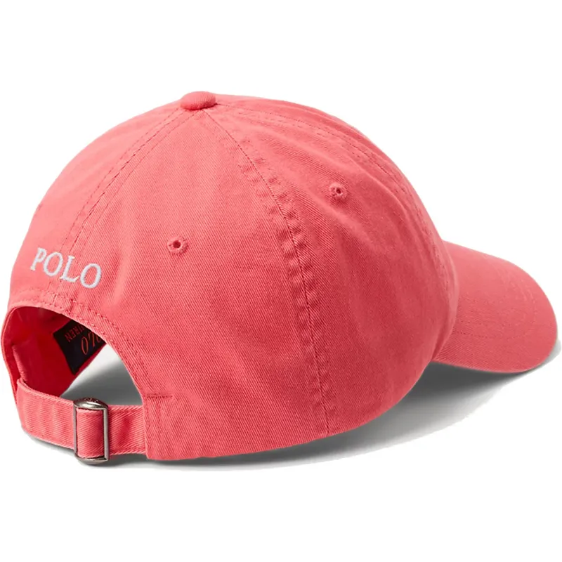 Den ljusröda justerbara böjda kepsen med vit Cotton Chino Classic Sport-logga från Polo Ralph Lauren är det perfekta komplementet till vilken outfit som helst. Denna unisex-designkeps anpassar sig perfekt till huvudet på alla vuxna tack vare sin justerbara remstängning.