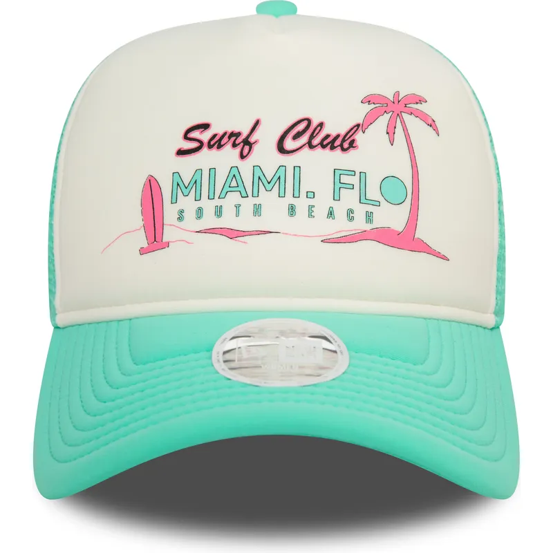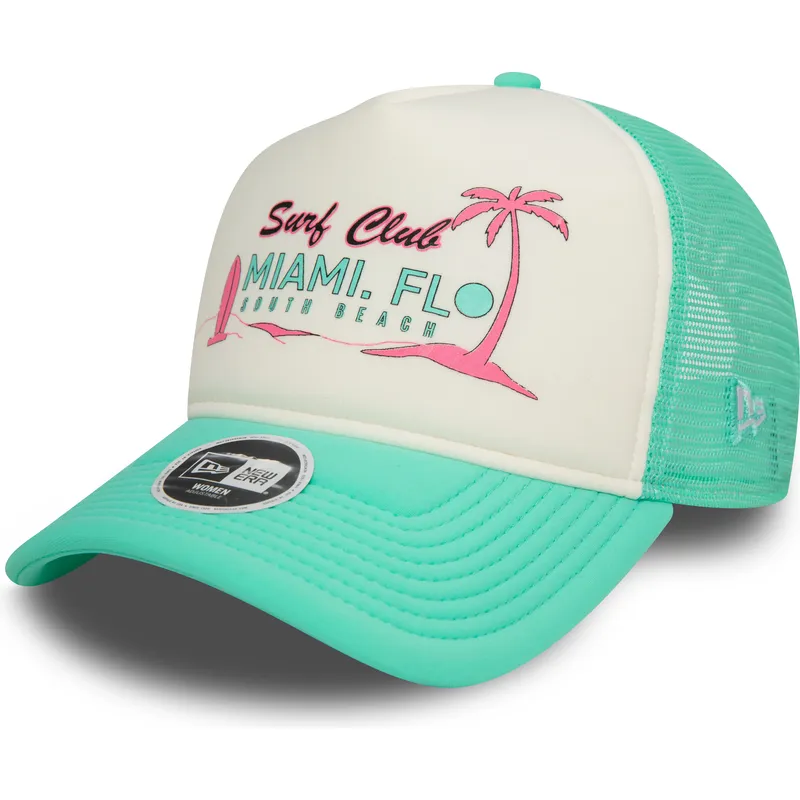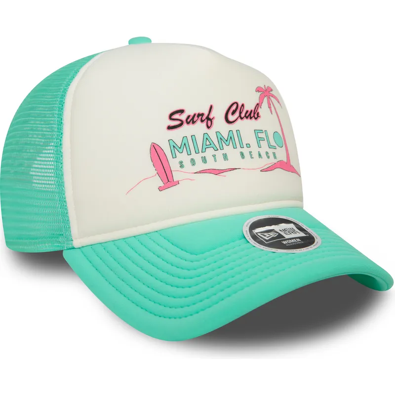 Missa inte möjligheten att köpa Miami Surf Club Florida A Frame Foam Front kvinnors vita och gröna truckerkeps från New Era. Dess kvalitet och design gör den till ett unikt och mångsidigt alternativ för alla tillfällen. Skaffa din och stick ut med denna modeaccessoar!