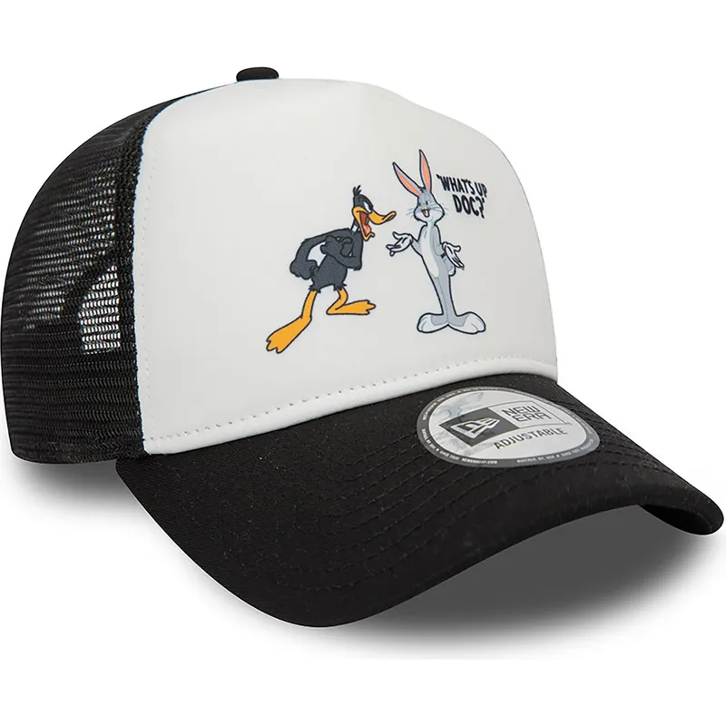 Upptäck magin med Looney Tunes och den oöverträffade stilen i New Era med denna exklusiva keps som får dig att sticka ut vart du än går. Skaffa Bugs Bunny och Daffy Duck Looney Tunes A Frame Character svart och vit truckerkeps från New Era nu och lägg till en touch av kul och originalitet till din look. Vänta inte längre med att visa upp denna unika och speciella keps!