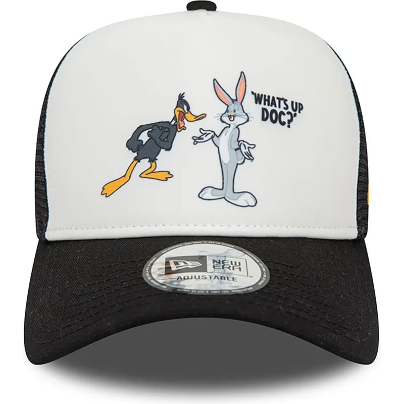 Den vita och svarta A Frame Character Bugs Bunny and Daffy Duck Looney Tunes truckerkeps från New Era är det perfekta komplementet till alla avslappnade och roliga outfits. Denna New Era-keps har en unisex-design som perfekt kombinerar den klassiska lastbilsstilen med de ikoniska Looney Tunes-karaktärerna, Bugs Bunny och Daffy Duck.