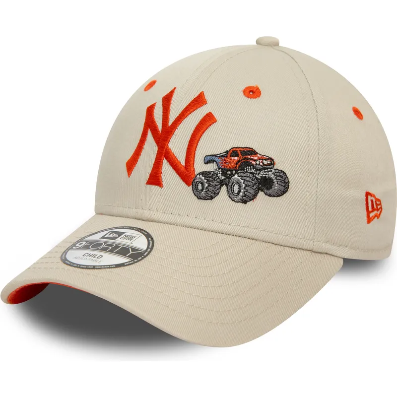 New Era New York Yankees MLB 9FORTY Graphic Monster Truck Boys justerbar beige böjd keps med orange logotyp är ett måste-ha tillbehör för små fans av detta basebolllag. Med den ikoniska Yankees-logotypen i orange som sticker ut mot den beige bakgrunden är den här kepsen perfekt för att visa upp sportandan med stil. Den justerbara remstängningen säkerställer en bekväm och säker passform för alla barn, medan dess unisexdesign gör den idealisk för alla tillfällen.