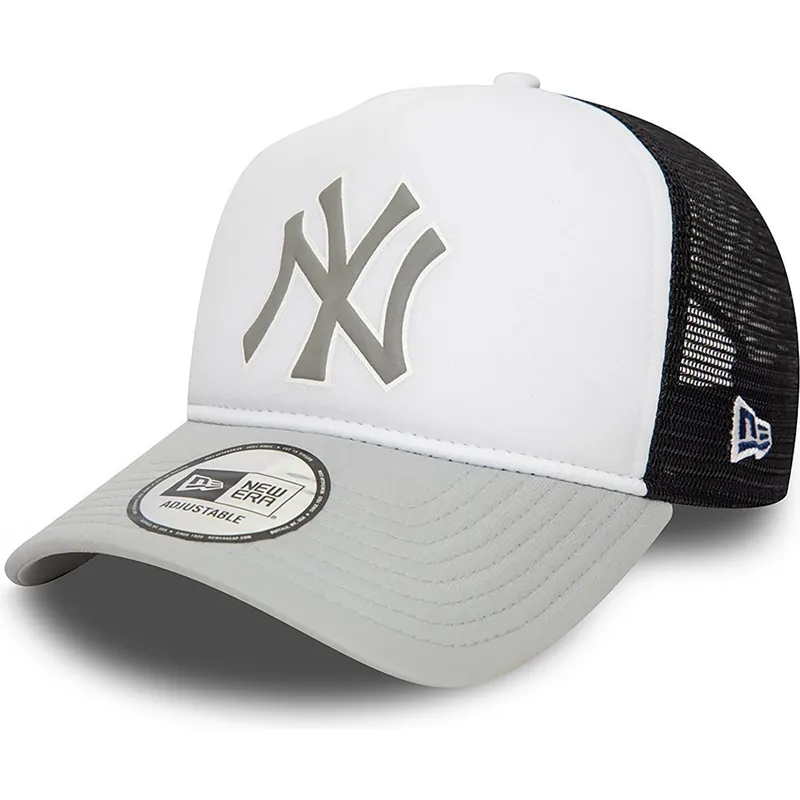 New York Yankees MLB A Frame Logo grå truckerkeps från New Era är den perfekta accessoaren för alla vuxna som vill visa upp en urban och sportig stil. Med sin snapback-stängning passar den här kepsen perfekt mot huvudet, vilket ger komfort och stil till alla som bär den. Dess unisexdesign gör den idealisk för alla som vill lägga till en touch av sofistikering till sin outfit.
