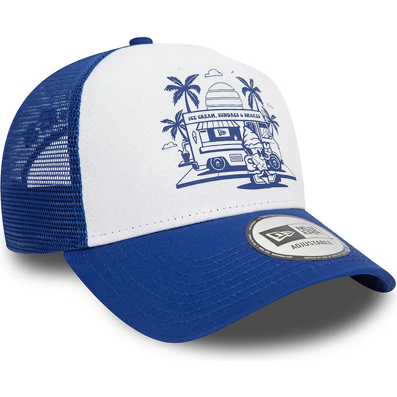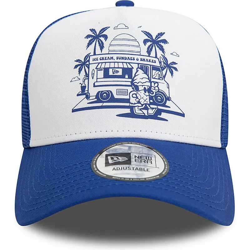 Denna Ice Cream Los Angeles A Frame Graphic vit och blå truckerkeps från New Era är det perfekta komplementet till alla avslappnade looker. Med sin unisexdesign och lastbilsform är den här kepsen idealisk för vuxna som letar efter ett mångsidigt och moderiktigt tillbehör. Snapback-stängningen garanterar en bekväm och säker passform, medan de vita och blå färgerna ger en touch av fräschör till vilken outfit som helst.