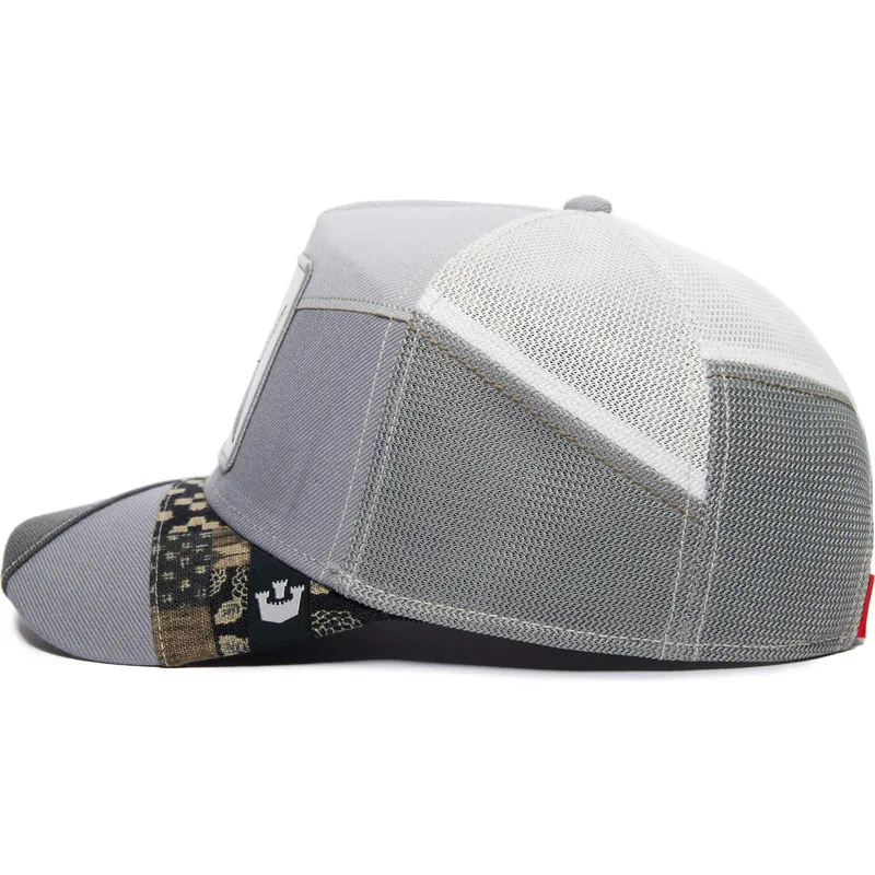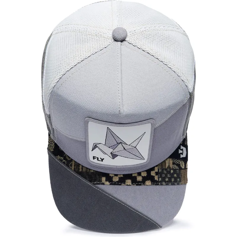 Goorin Bros. Fly Loyal Farmigami The Farms grå kranlastarkeps är en unik pjäs som kombinerar stil och komfort perfekt. Denna keps, designad för vuxna, har en snapback-stängning som gör att den kan justeras till önskad storlek, vilket garanterar en perfekt passform för alla tillfällen. Den här kepsens unisexdesign gör den till ett mångsidigt alternativ för vilken outfit som helst, vare sig den är avslappnad eller mer formell.