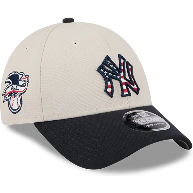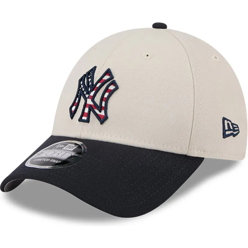 Med New York Yankees MLB 9FORTY Stretch Snap 4th of July Curved Beige och Navy Snapback Cap från New Era kan du visa upp din Yankees passion när som helst och var som helst. Oavsett om du är på stadion och stöttar ditt lag eller på gatan och visar din lojalitet, är den här kepsen det perfekta komplementet till vilken outfit som helst. Snäppförslutningen garanterar komfort och passform, så att du kan bära den här kepsen hela dagen utan något obehag.
