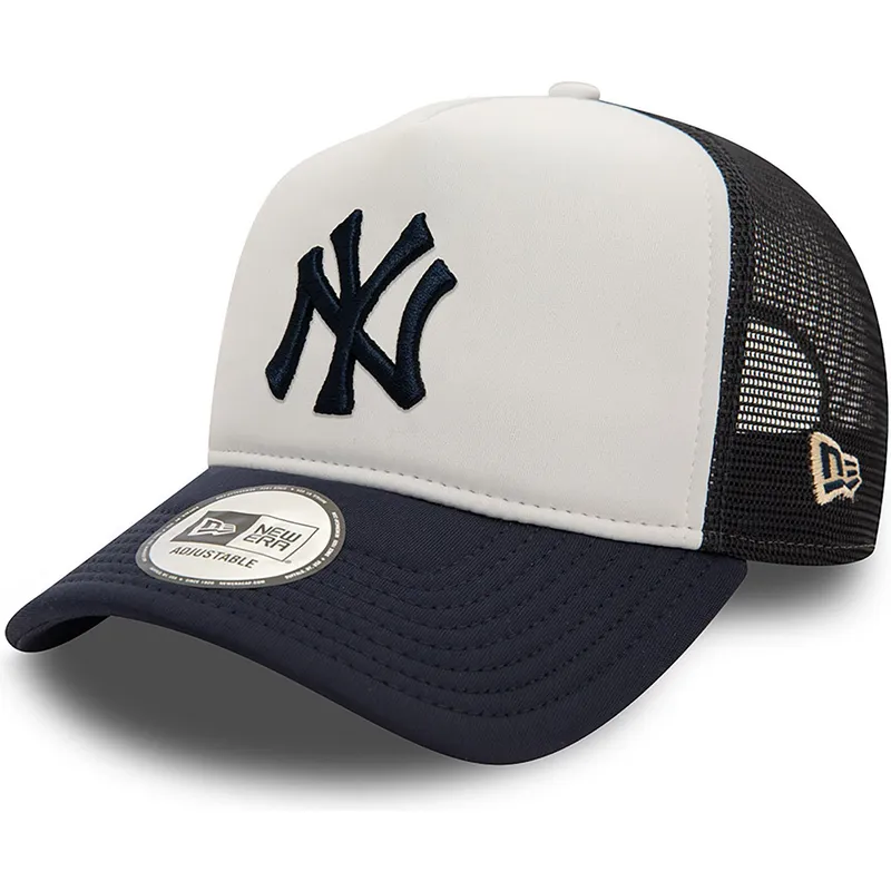 New York Yankees-fans kan inte missa möjligheten att bära New York Yankees MLB A Frame World Series vit och marinblå truckerkeps från New Era. Med Yankees-logotypen präglad på framsidan är denna keps en symbol för identitet för dem som brinner för detta basebolllag. Snapback-stängningen möjliggör en anpassad passform, vilket säkerställer komfort och stil för vuxna som vill framhäva sin kärlek till Yankees vid alla tillfällen.