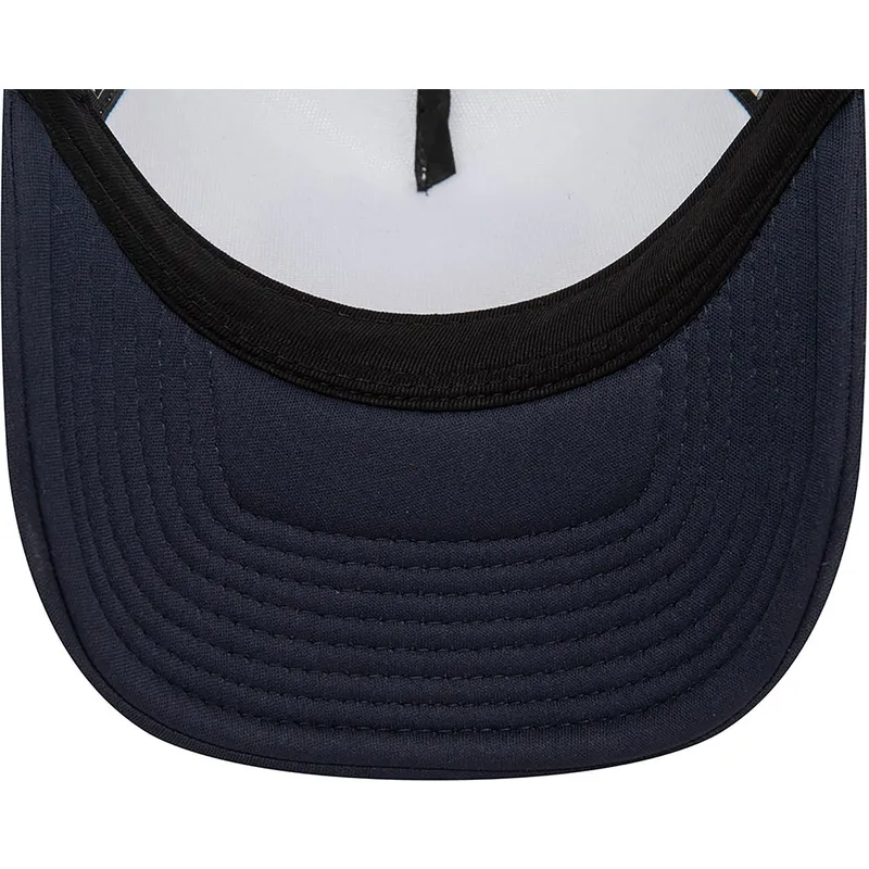 A Frame World Series New York Yankees MLB vit och marinblå truckerkeps från New Era är det perfekta valet för de mest lojala fansen av detta legendariska basebolllag. Med Yankees-logotypen på framsidan är den här kepsen ett måste-ha-tillbehör för alla fans som vill visa sitt ovillkorliga stöd för New York-serien. Truckardesignen ger den en modern och urban touch, perfekt för att se snygg ut när som helst på dygnet. Snäppförslutningen säkerställer en bekväm och säker passform, anpassad till olika huvudstorlekar.