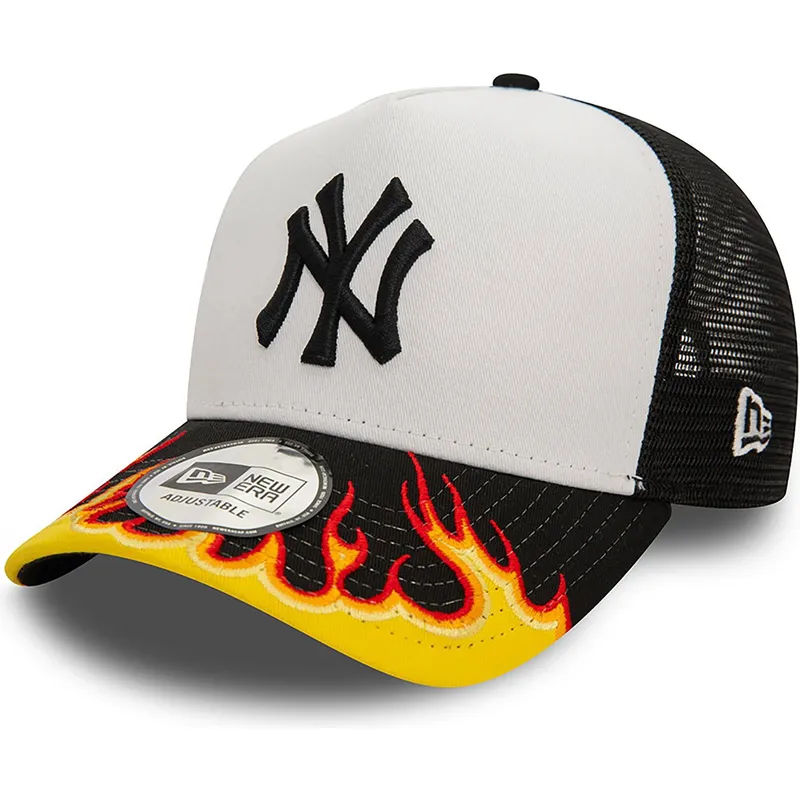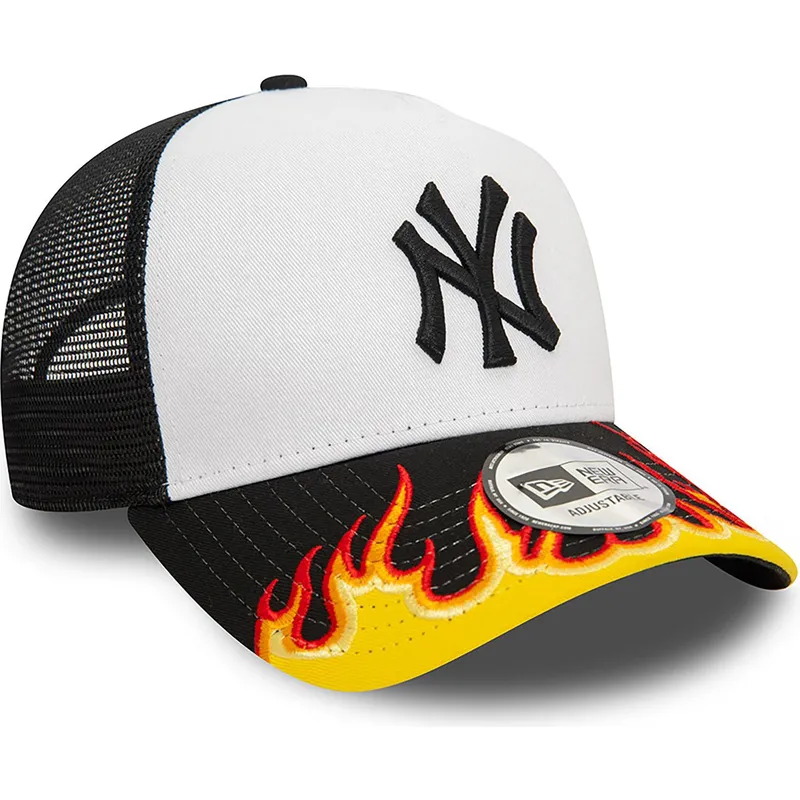 New York Yankees MLB A Frame Flame svart och vit lastbilshatt från New Era är den perfekta accessoaren för alla New York Yankees-fans. Designad för vuxna, denna keps kombinerar perfekt den klassiska stilen från New Era-märket med basebolllagets ikoniska färger.