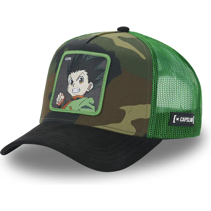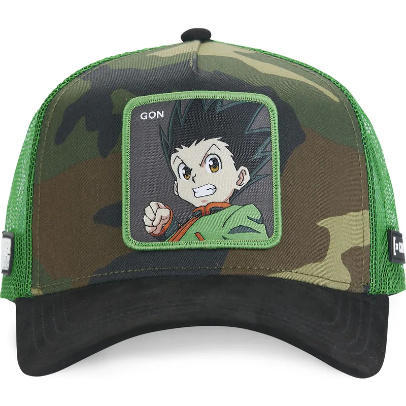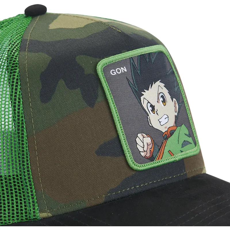 Gon Freecss HU3 Hunter x Hunter kamouflage och svart truckerkeps från Capslab är det perfekta tillbehöret för fans av denna populära anime-serie. Med en design inspirerad av karaktären Gon Freecss, kombinerar denna keps kamouflage med svart i en unik och slående estetik. Varumärket Munbatala har skapat denna keps med den klassiska lastbilsformen, som ger komfort och stil till alla som bär den.
