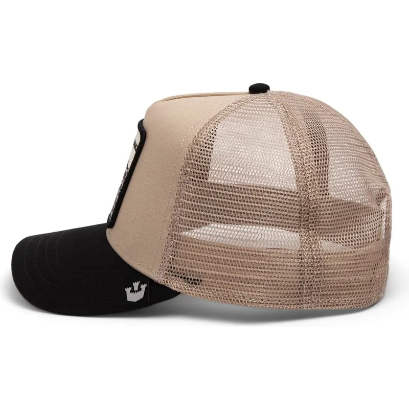 The Goorin Bros. Menace The Snow Leopard beige och svart leopard truckerkeps är utan tvekan en av märkets mest populära kepsar. Dess lastbilsform ger den en avslappnad och urban look, perfekt att kombinera med vilken ledig outfit som helst. Med snapback-stängningen kan du justera den till önskad storlek, vilket garanterar komfort och stil hela tiden.