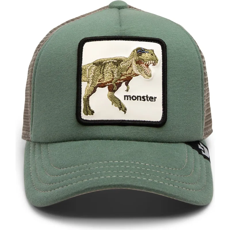 Den gröna truckerkepsen för pojkar dinosaurie T-Rex Monster Little Tyrant Extinct The Farm från Goorin Bros. är en unik pjäs som kombinerar stil och roligt för de små. Med sin unisexdesign passar den här kepsen alla barn som vill se moderiktiga ut och sticka ut från mängden. Snäppförslutningen möjliggör enkel justering för en bekväm, säker passform, medan den ikoniska Goorin Bros.-logotypen på framsidan ger en touch av äkthet.