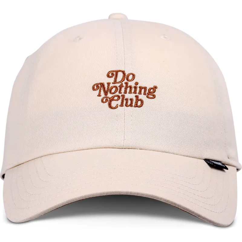 Do Nothing Club DNC 30:e justerbara beige böjda keps från Djinns är ett viktigt tillbehör i garderoben för alla urbana modeälskare. Med märkets logotyp på framsidan ger denna keps en touch av unik stil till varje look. Dess unisexdesign gör den perfekt för både män och kvinnor, och dess justerbara remstängning säkerställer en bekväm och säker passform.