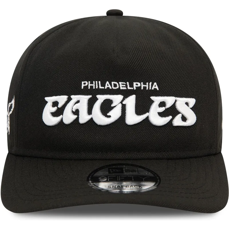 Denna New Era-keps utmärker sig för sin böjda design och snapback-stil, egenskaper som gör den unik och iögonfallande. Den här kepsen är gjord av högkvalitativa material och är tålig och hållbar, perfekt för att följa med dig i alla dina fritidsstunder eller under Philadelphia Eagles-spel. Dess svarta design ger den en elegant och mångsidig touch, perfekt att kombinera med vilken outfit som helst och visa upp en sportig och fashionabel look.