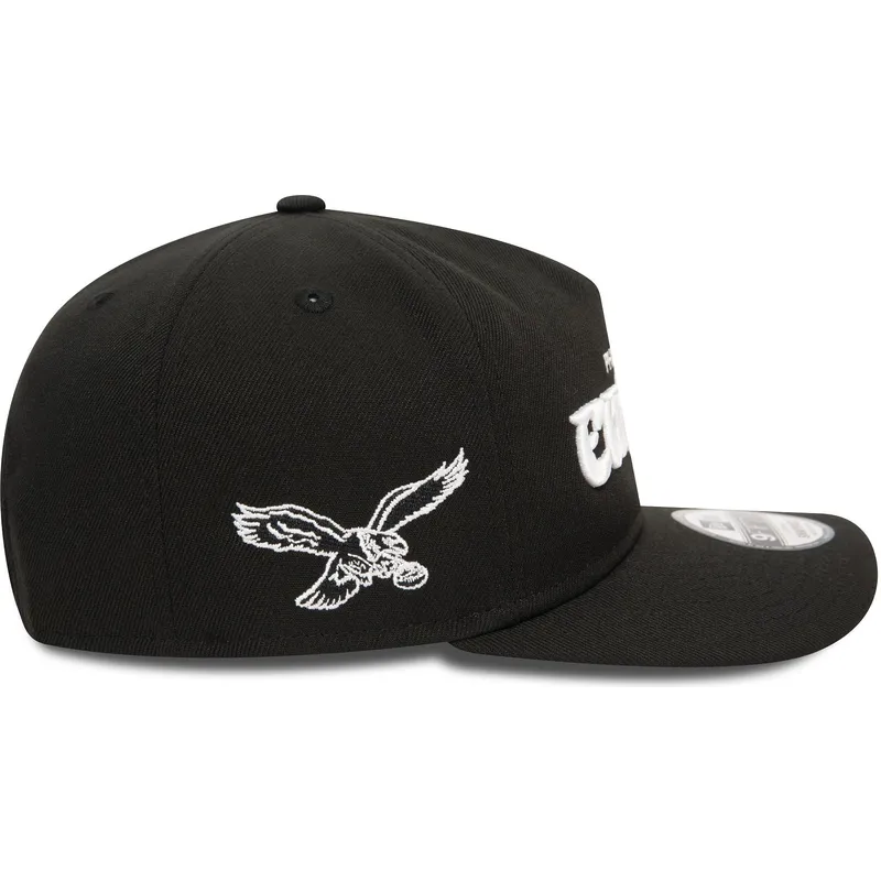 Philadelphia Eagles NFL Curved Black 9FIFTY A Frame Coaches Snapback Cap från New Era är det perfekta tillbehöret för fans av detta amerikanska fotbollslag. Med Philadelphia Eagles-logotypen på framsidan är den här kepsen idealisk för att visa upp din lagstolthet när som helst. Dessutom gör dess snapback-stängning att den kan justeras till önskad storlek, vilket garanterar en bekväm och säker passform för alla vuxna som använder den.