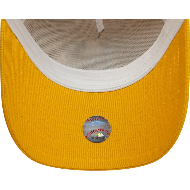 Den livfulla gula färgen på denna keps framhäver Los Angeles Dodgers-logotypen broderad på framsidan, vilket ger den en unik stil. Snäppback-stängningen möjliggör en personlig passform för att säkerställa komfort hela dagen, medan lastbilsformen ger en avslappnad, avslappnad look till vilken outfit som helst.