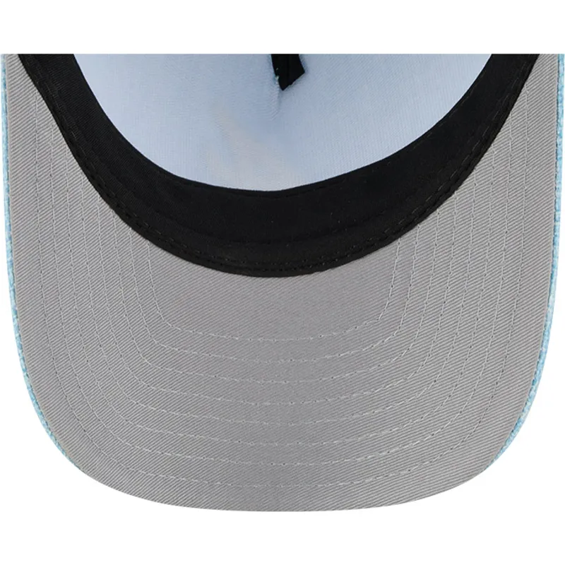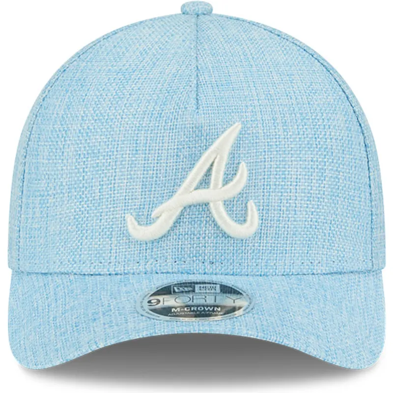 The New Era Light Blue Atlanta Braves MLB 9FORTY M-Crown A Frame Cotton Weave Curved Snapback Hat är det perfekta tillbehöret för alla Atlanta Braves-fans. Designad av det välkända varumärket New Era, den här kepsen har den ikoniska Braves-logotypen broderad på framsidan, vilket gör den till ett måste för att visa ditt stöd för laget.