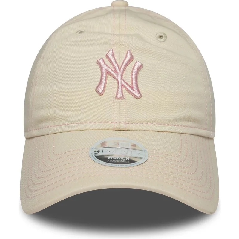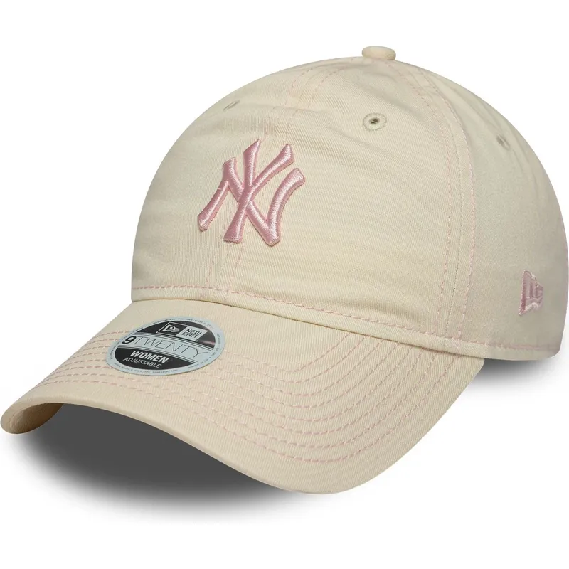 Kepsens beige färg ger en neutral och elegant touch, medan den broderade rosa New York Yankees-logotypen tillför en feminin och modern detalj som gör den unik. Dessutom har kepsen en design med kontrasterande sömmar som ger den en speciell finish och framhäver dess avslappnade och urbana stil. Denna keps med böjt brätte är perfekt för dig som vill visa sitt stöd för New York Yankees utan att offra en sofistikerad och modern look.