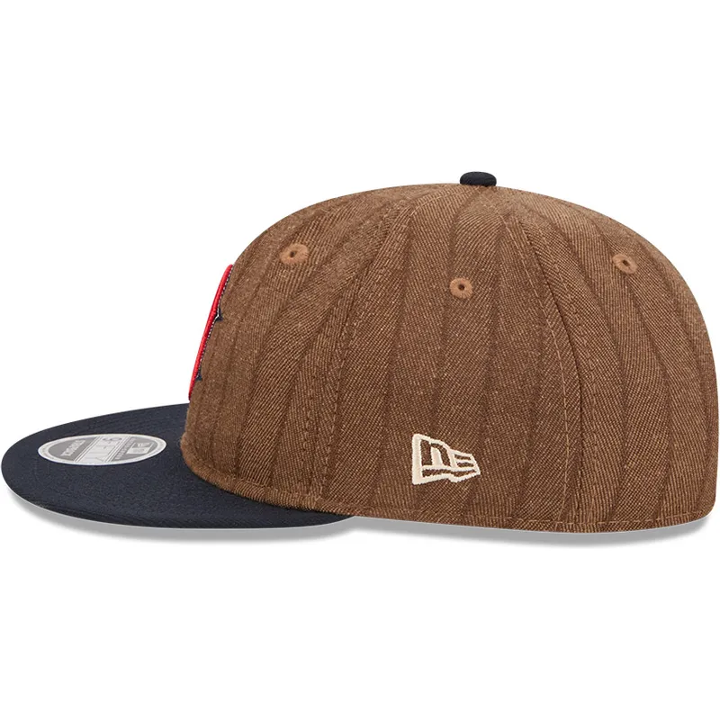 Kepsens design utmärker sig genom sin kombination av bruna och marinblå toner, vilket ger en mycket elegant retrokänsla, perfekt för dem som söker en annorlunda stil inom den omfattande katalogen av officiella Boston Red Sox-produkter. Ullstrukturen med fina pinstripe-linjer ger en sofistikerad detalj, typisk för New Eras kollektioner som blandar tradition med aktuella trender. Denna keps återspeglar inte bara lagets anda utan erbjuder också hållbarhet och komfort för vardagligt bruk eller vid sportevenemang.