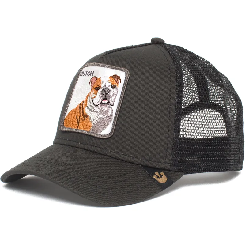 Goorin Bros. Butch Bulldog svarta truckerkeps är ett plagg som inte kommer att gå obemärkt förbi någonstans. Dess originella och roliga design är perfekt för dig som vill sticka ut från mängden. Bulldoggen är en ständig närvaro på hatten, vilket gör den till ett alldeles speciellt plagg för älskare av denna ras.
