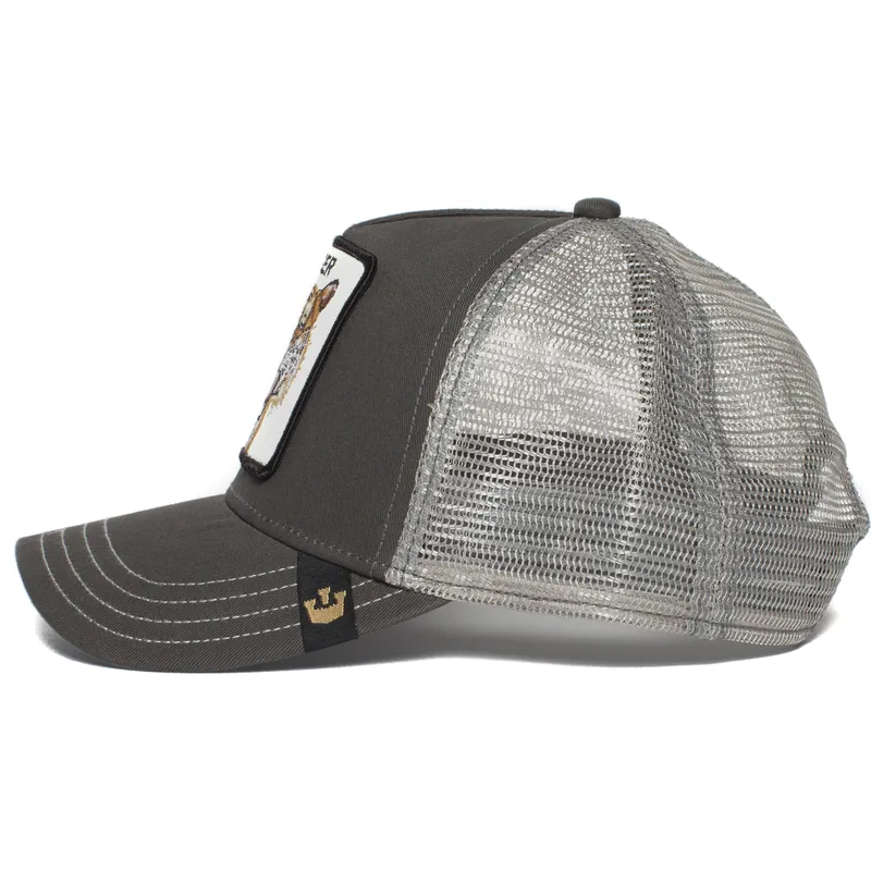 Goorin Bros. Eye of the Tiger Grey Trucker Hat är ett trendigt plagg som utan tvekan kommer att locka uppmärksamheten hos alla naturälskare. Denna hatt är perfekt för dig som söker en unik och sofistikerad stil i sin garderob. Den böjda skärmen skyddar ögonen från solen, medan nätryggen ger bättre ventilation på varma dagar. Snapback-stängningen säkerställer en perfekt passform, vilket innebär att du inte behöver oroa dig för att hatten ska glida eller ramla av.