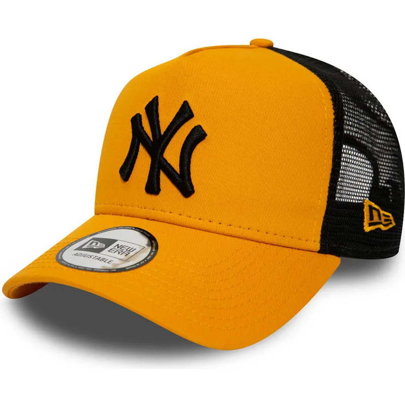 New Era New York Yankees MLB League Essential A Frame svart logotyp orange truckerkeps