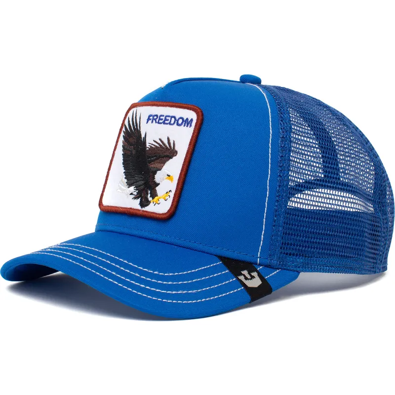 Om du letar efter en keps som får dig att känna dig lika fri och vild som en örn, då är Goorin Bros. The Freedom Eagle The Farm Blue Trucker Cap perfekt för dig. Denna trucker-keps är idealisk för vuxna som vill ha en unisex och attraktiv design, med en snäpplåsstängning som gör att den kan justeras till alla huvudstorlekar.