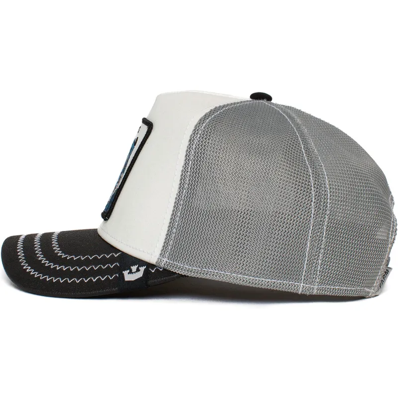 Den svartvita färgkombinationen är alltid ett säkert kort i modevärlden. I det här fallet leker Goorin Bros. King Sparkle The Farm svartvit tiger trucker-keps med dessa kontraster för att skapa ett unikt och iögonfallande plagg. Den broderade tigern på framsidan är det element som ger den touch av djärvhet och våghalsighet som varje keps borde ha.